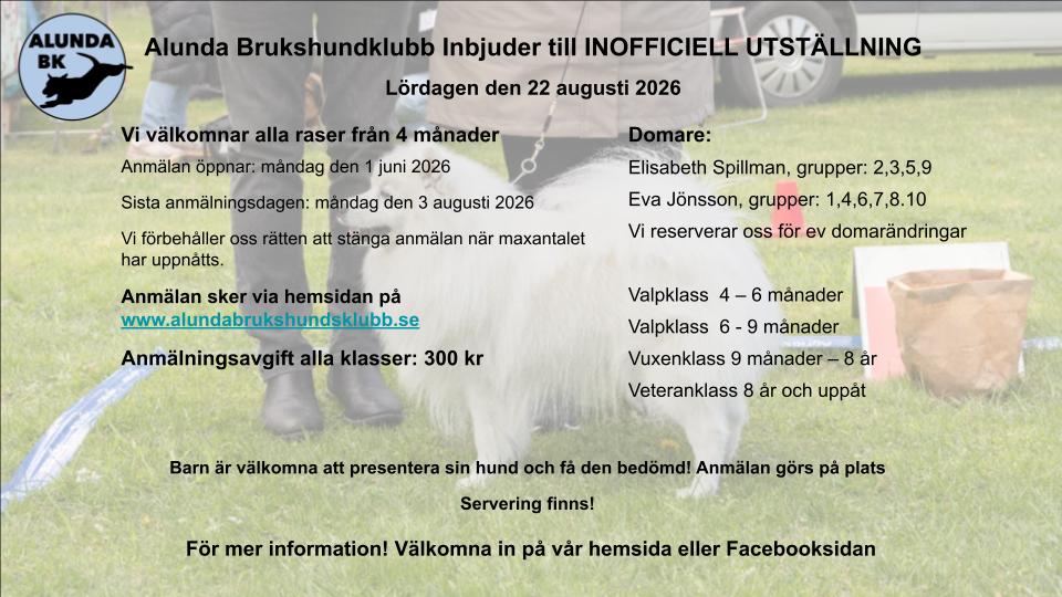 VÄLKOMNA till vår inofficiella hundutställning 2026.